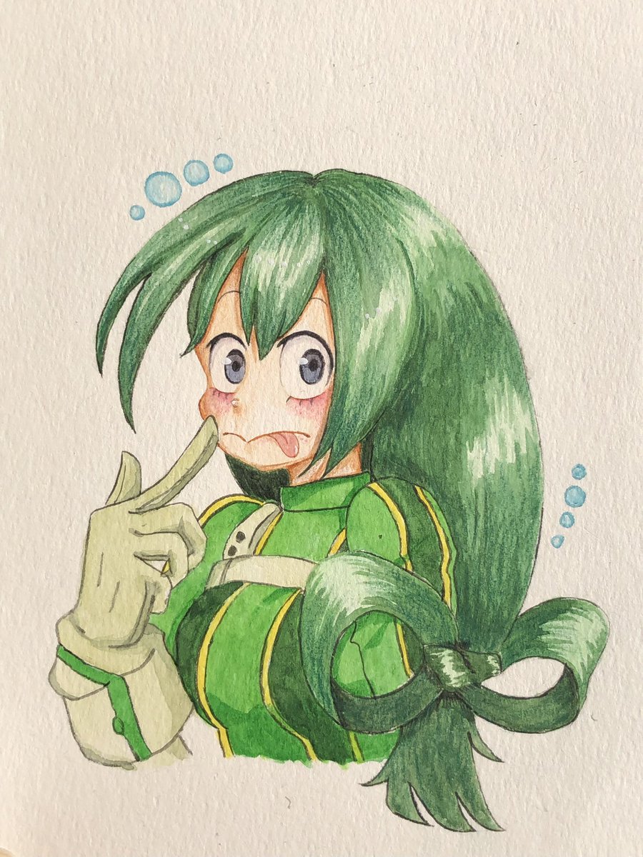 梅雨ちゃん(ノ*°▽°)ノ #イラスト #水彩 #蛙吹梅雨 #ヒロアカ