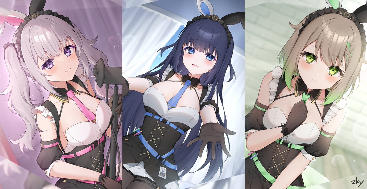 バーチャルメイド喫茶『こねくとぴあ』所属の 夜美月どくろさん、天之いぬくさん、天砕めておさんの オンラインサロン用サムネイルイラストを描かせていだきました~! よろしくお願いします😌