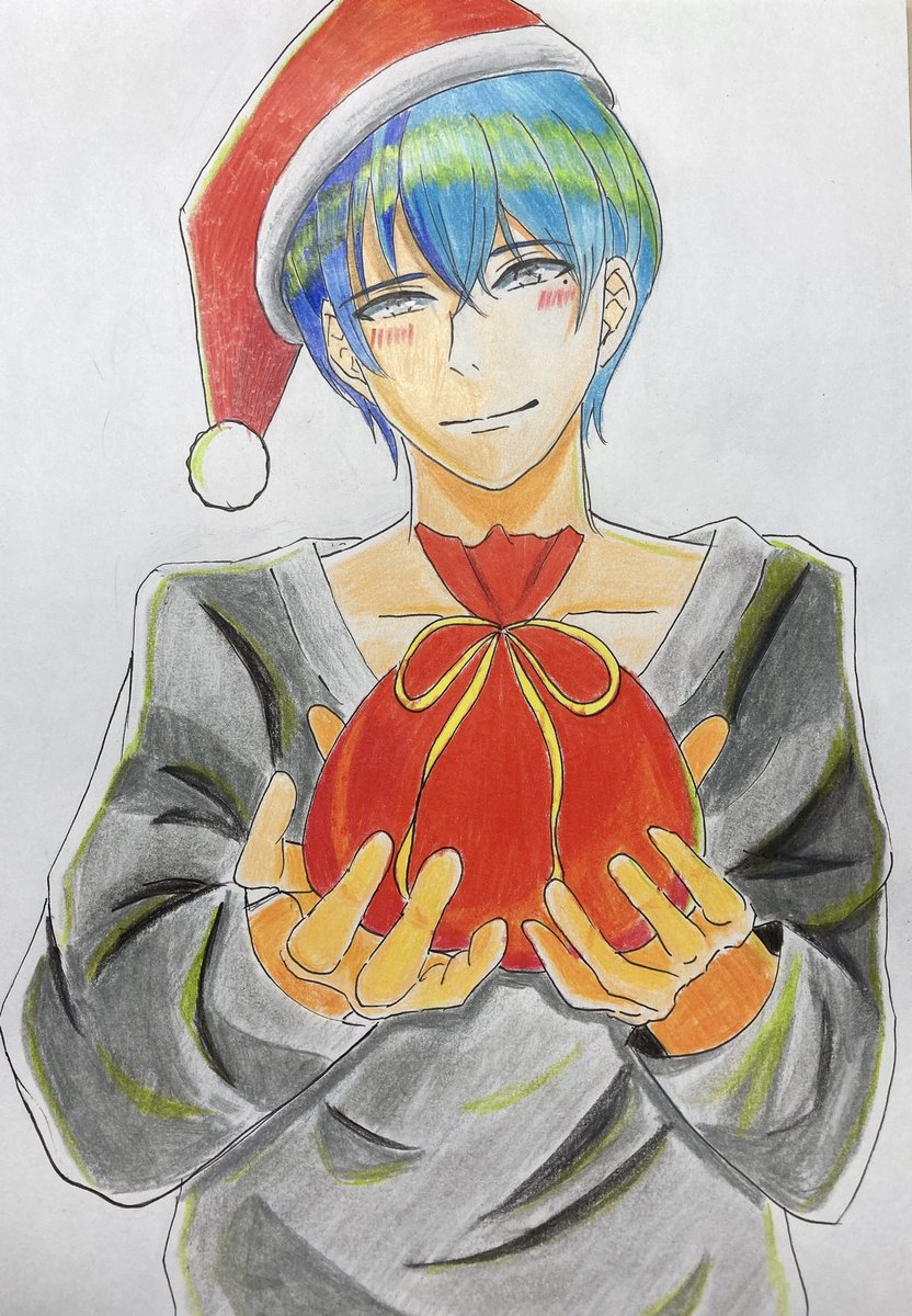 初めて色鉛筆で描きました 下手くそです 腕もミスってます メリークリスマス #prsk_FA #青柳冬弥 #プロセカ好きさんと繋がりたい