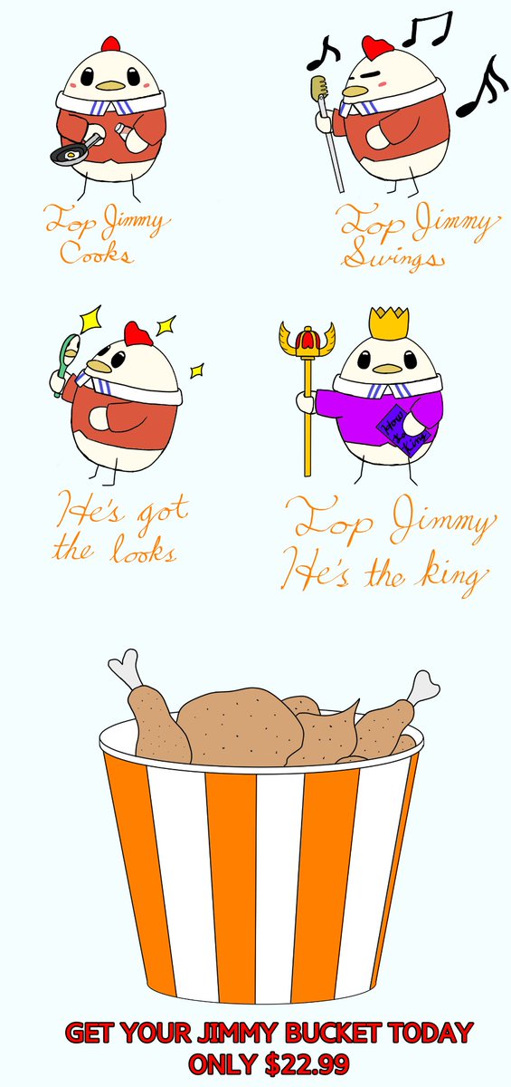 A tribute to our most loyal chicken, Jimmy, who comes into work no matter how many times he gets fried (Based on Top Jimmy by Van Halen) #artsofashes #kfp