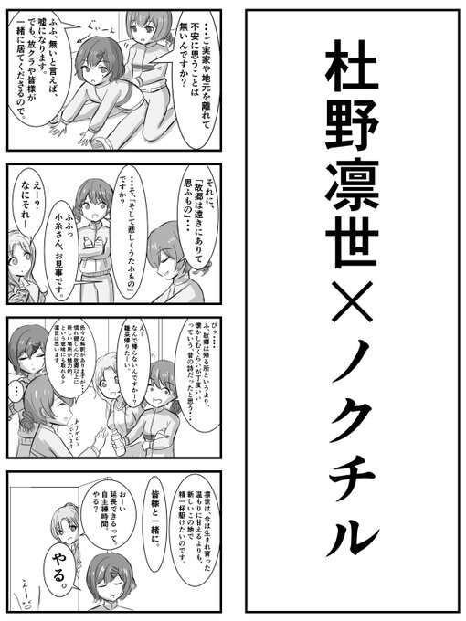 シャニマスウエハース出た組み合わせ四コマ その3 (うわっ!?というミスをしていたのであげ直しです💦 いいね、リツイートくださった方、申し訳ございません🙇♂️) #シャニマス #シャニハース組み合わせ四コマ #杜野凛世 #ノクチル