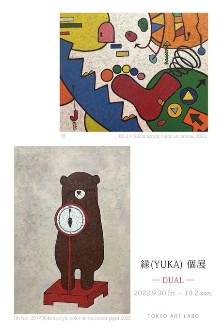 僕がプロデュースした個展 本日最終日!⚠️Open:12〜16時 画家/イラストレーター 縁さんの個展✨✨ 『DUAL』 会場|東京アートラボ 展示詳細▼ shiki-official.com/single-post/20… イラスト作品はコロナによって変わりゆく社会の風刺的な表現の作品が並びます🐻 #色プロデュース #イラスト