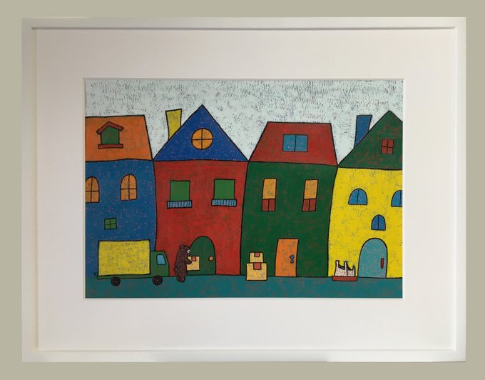 アフター企画本日まで💨 @YUKA_s_Art 🖼️縁個展-afterWEB展-🖼️ ------------------------- 題:town〜その後〜 アクリル絵具、黒ペン 縦268×横386mm ------------------------- 販売📲 artsmarket-official.square.site/shop/yuka/9 会場view📲 theta360.com/s/rKy53D7z59nY… #インテリア #イラスト #現代アート