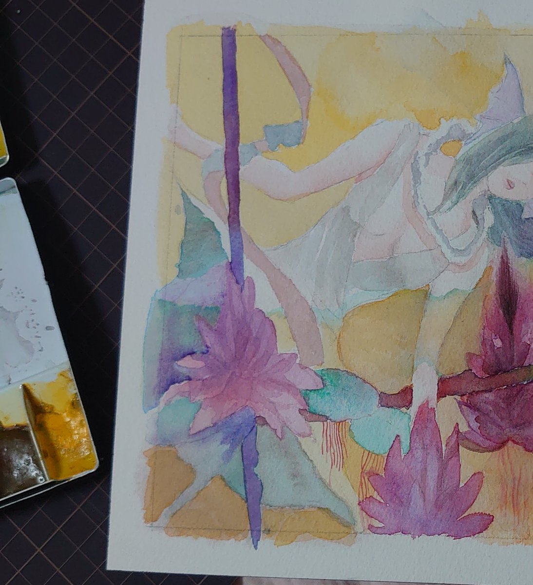 水彩紙を変えたら絵の具がとても鮮やか……。 出来上がったら額と合わせてしっくりくるように調整したいな……。 #wip #残された標 #galleryhydrangea #水彩 #Watercolor