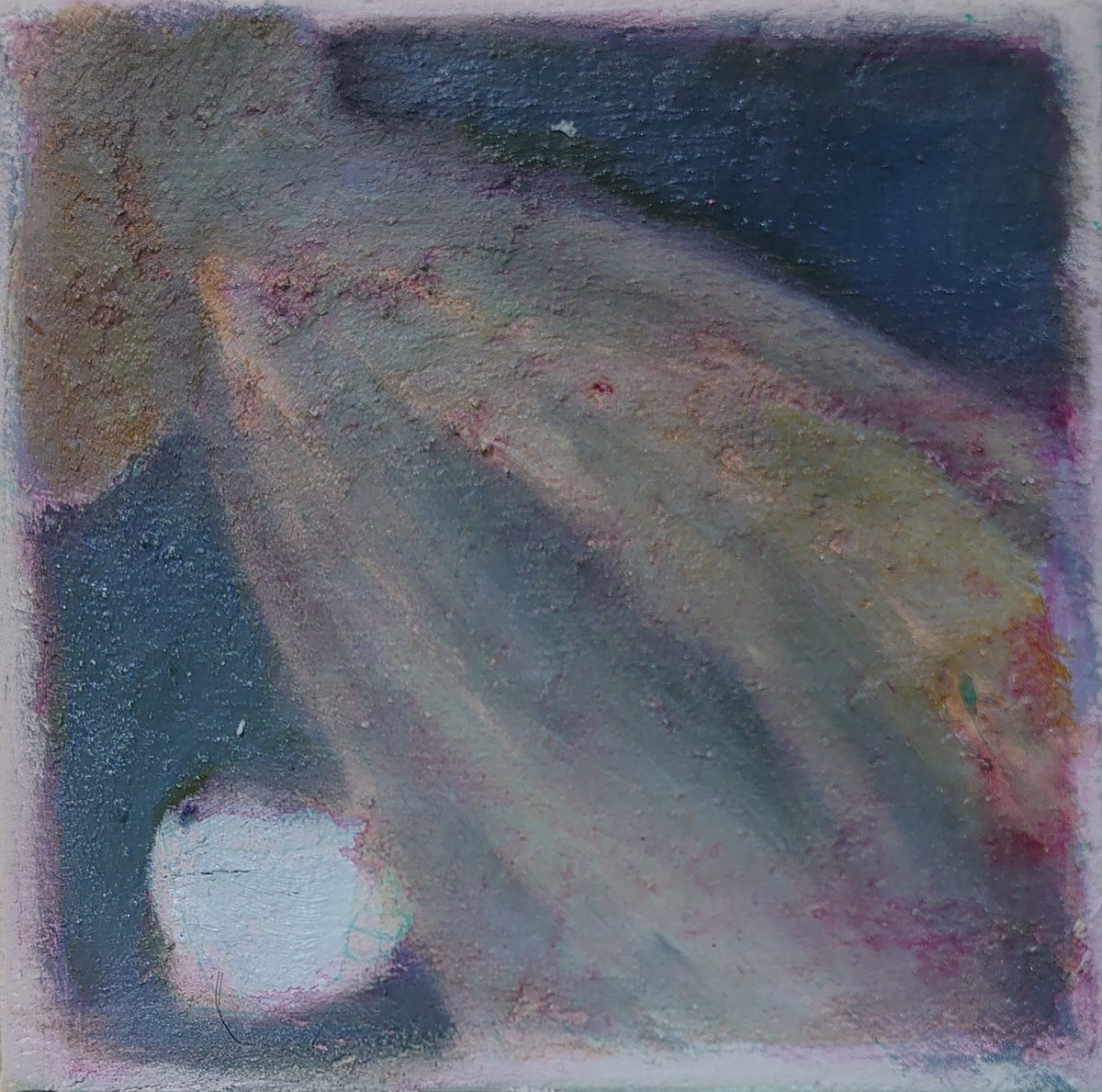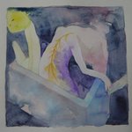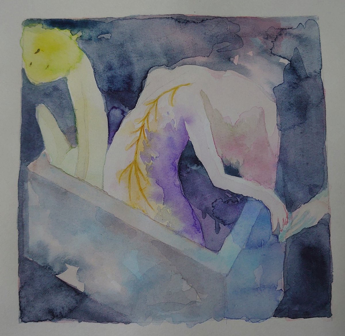 小作品も額装してみました🥳 両方とも船旅です🌊🛶 右:『揺らぐ河』150×100㎜ 左:『漂泊の菫青』100×100㎜ #月の砂塵 #galleryhydrangea #水彩 #透明水彩 #watercolor
