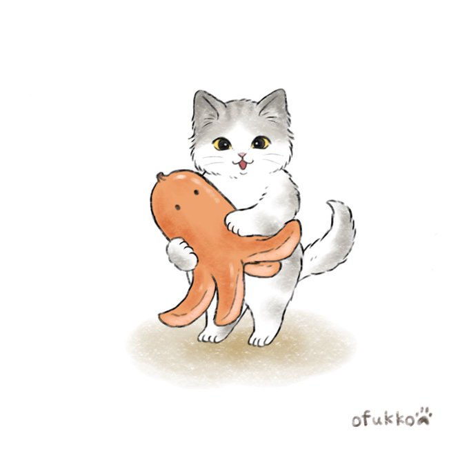 タコさんウインナー🐙 #イラスト #ねこ #猫 #ウインナー #長毛ねこ #一日一絵