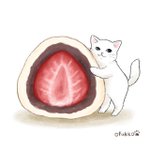むぎゅ……🍓 昨日イラスト投稿ができなかったので本日2枚目 #イラスト #ねこ #猫 #いちご大福 #苺 #一日一絵