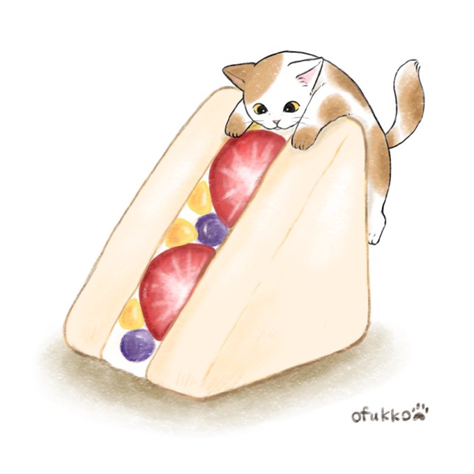 よいしょ…🥪 #イラスト #ねこ #猫 #フルーツサンド #サンドウィッチ #一日一絵