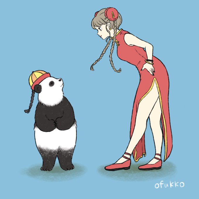 ニーハオ🐼你好 #イラスト #パンダ #チャイナ #チャイナドレス #女の子 #一日一絵