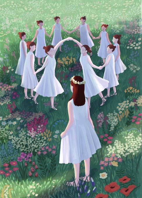 #今月描いた絵を晒そう テーマ「入る」 映画ミッドサマーをイメージして描きました。