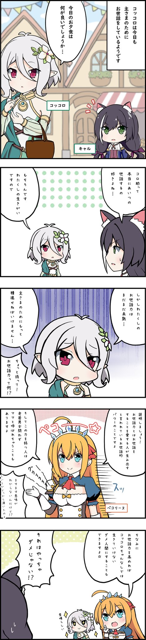プリコネ5コマ漫画「お世話力」C97新刊サンプル1 | からすのしっぽ #pixiv #プリコネR #プリンセスコネクト pixiv.net/artworks/78050… フルカラー本やで!
