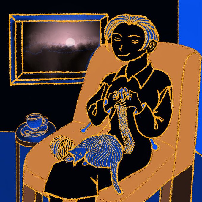 2 16 「明日、地球が滅亡するとしても、 私は、今日、編み物をする」 #イラスト #絵画 #明日地球が滅亡するとしても #絵描き 22/11/22 20:22