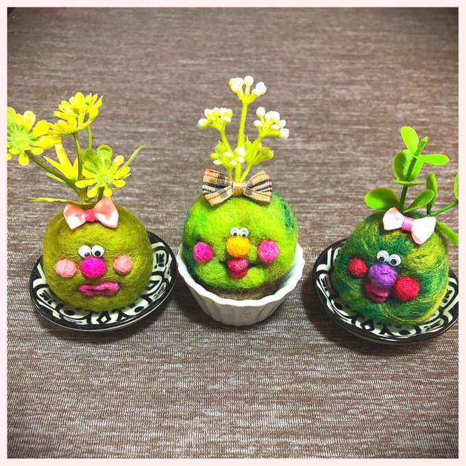 0 16 新しく、真ん中のコケ玉ちゃん♡♡ お皿も良いんだけど...この白い陶器も可愛いね🥰🥰セリアさん、可愛いお皿など、いつもありがとうございます🥰🥰 #羊毛フェルト #コケ玉 #コケ玉ちゃん 22/09/30 08:52