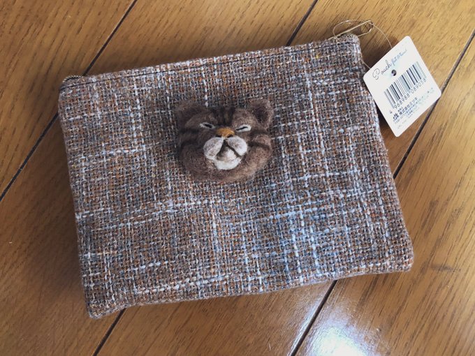 セリアで買った秋らしいポーチに羊毛フェルトも可愛いなぁ🥰🥰 #羊毛フェルト #ポーチ