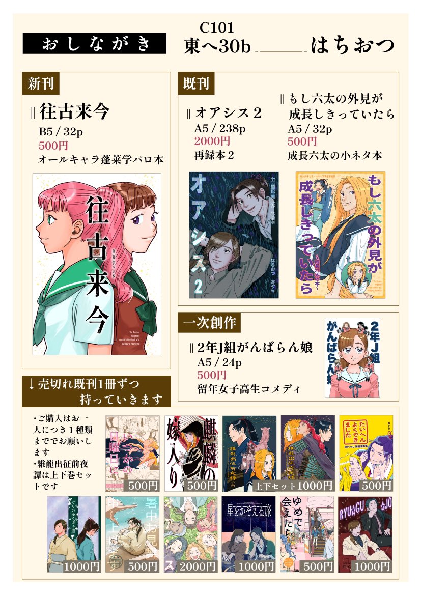 冬コミスペースいただきました! 新刊出せるようにがんばりますっ あなたのサークル「はちおつ」は、コミックマーケット101で「金曜日東地区 "ヘ " 30b」に配置されました!コミケWebカタログにてスペース配置場所公開中です! webcatalog.circle.ms/Circle/Map/168… #C101WebCatalog