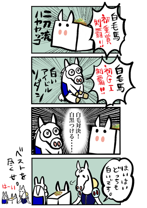 #6月になったのでフォロワーさんに自己紹介しようぜ オグオグサンダーと言う架空の競走馬のオーナーブリーダーです。 馬グッズを作ったり、たまに4コマを描いたり動画を作ったりします。 ミラーボールの良さも広めたいです。 最近、創作に時間を費やせないのが悩ましいです。