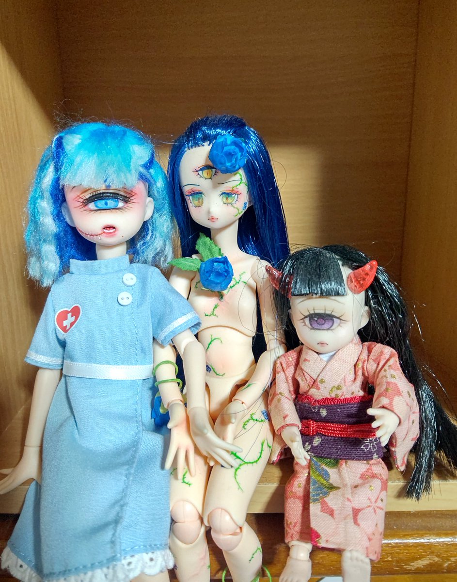 とわこさんが、オーダー受け付けていらっしゃるので悩んでいる方の参考になればとうちの子たちの写真を。 DDさん 単眼ちゃんや多眼のお花の精霊さん。 傷メイクの単眼ちゃんのウィッグも、とわこさんが作られたものです。 オビツ50ボディーにメイクをお願いした子。 #つばきゅろぷす