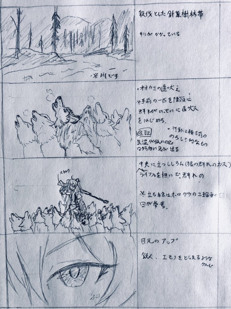 ホロオルタナティブに獅白ぼたんが出演してなかったのに納得出来なかったので、絵コンテを描いて勝手にPVに出演させてみました。 弱肉強食、殺伐とした自然界をイメージして描いた結果、ライオンなのに狼の群れを率いるボスになりました。 #勝手にホロメンオルタナティブ #hololiveALT #ししらーと