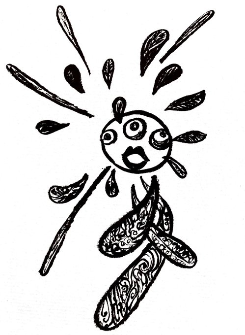 おはようございます☀ 朝活17日目 散歩、ストレッチ、呼吸 さあさ始まる物語、あなただけの神話を刻んで そんな感じで今日も水分多めに妖怪ハッピー✨👻 #朝の挨拶 #イラスト #10000日チャレンジ