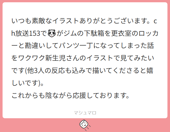 確かに経緯が分からないと謎ですよね😂 182回のこのやりとりから、🐼が聞き返すたびにそのように言われる風潮が出来上がったのかな〜と思われます