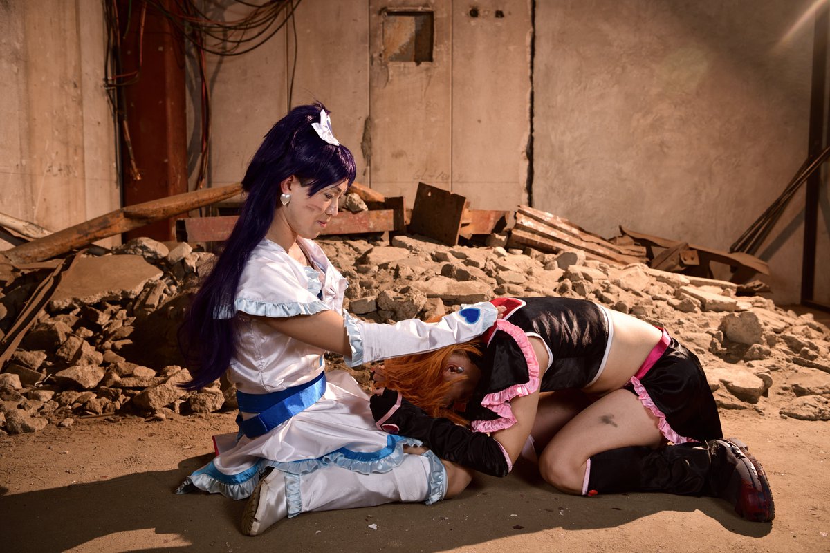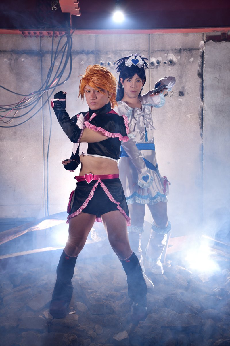 ふたりはプリキュア撮影。 40歳のおじさんだけど、この日のために10kg痩せて臨んだよ! キュアブラック:にーやん キュアホワイト:kenさん @ken04071115 イルクーボ:こたつさん @kotatuDX 撮影:きっちょむさん @kittyom3