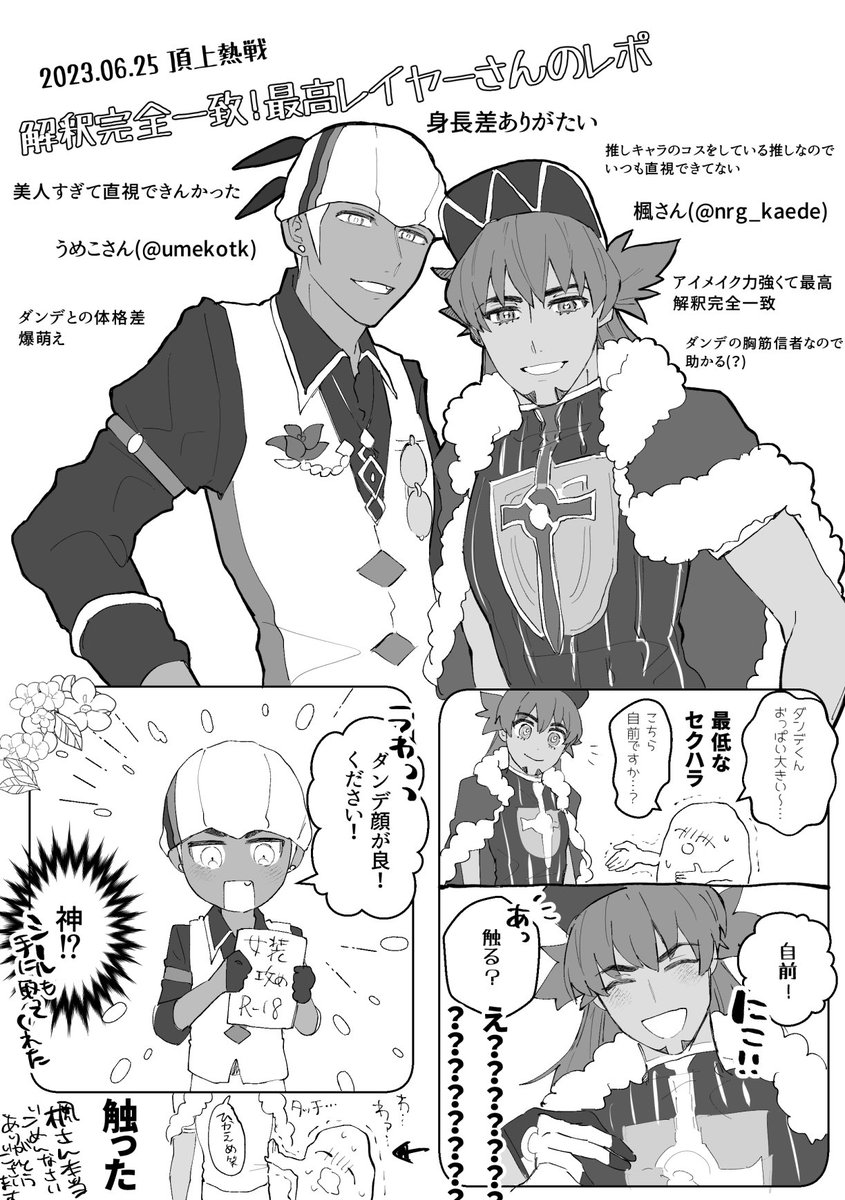 6/25の頂上熱戦 最高レイヤーさんレポ dnd:楓さん(@nrg_kaede) kbn:うめこさん(@umekotk ) お話ししてくださってありがとうございました!