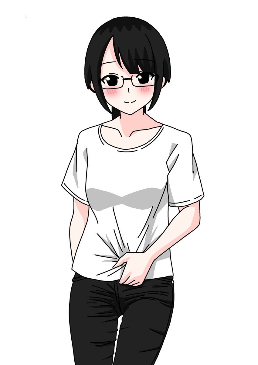 パンツスタイルな中村心春さん #イラスト #オリキャラ #眼鏡っ娘