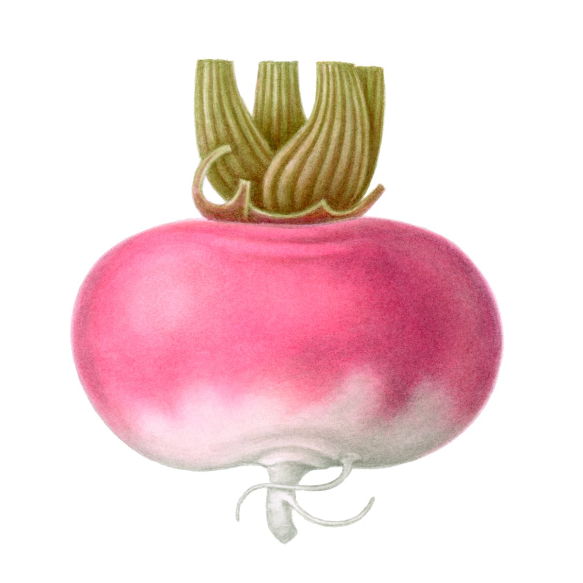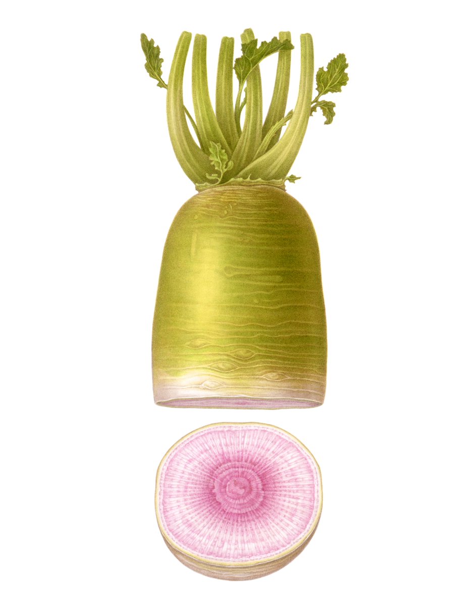 紅心蘿蔔/紅芯大根(watermelon radish) #大橋正 #tadashiohashi #水彩画 #watercolor #artworks #Illustration #graphicdesign #art #drawing #イラスト #グラフィックデザイン #絵画 #紅芯大根 #watermelonradish #大根 #中国野菜 #広告デザイン #キッコーマン
