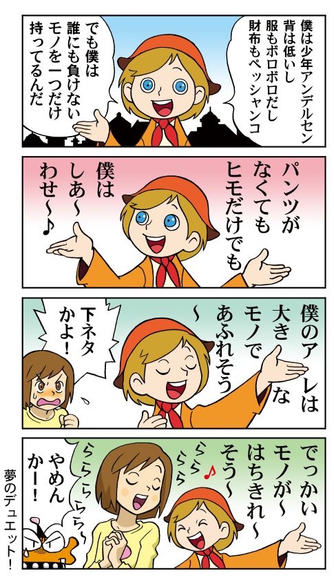 マンガ『わたしの好きな歌』を描きました。人生2度目のミカドです。「アゴの長さはこれくらいだろう」と思って描いてみたら、実際はもっと長くてビックリ。