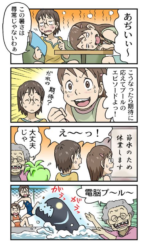 「乗るしかない、このビッグウェーブに!!」てな調子のマンガを描きました。どーもスイマセン!