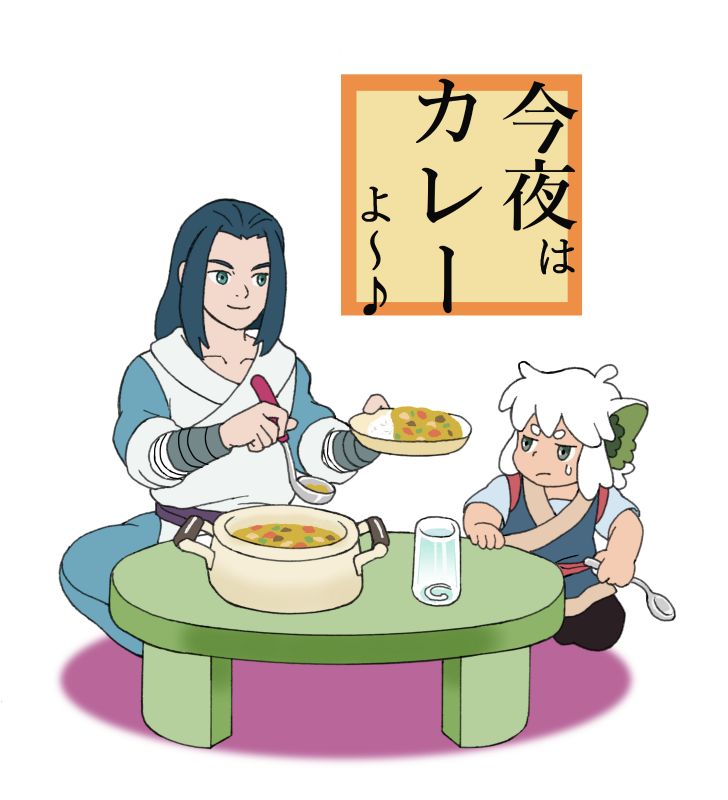 カレーを前にして、何故かたじろくシャオヘイを描きました。 #羅小黒戦記