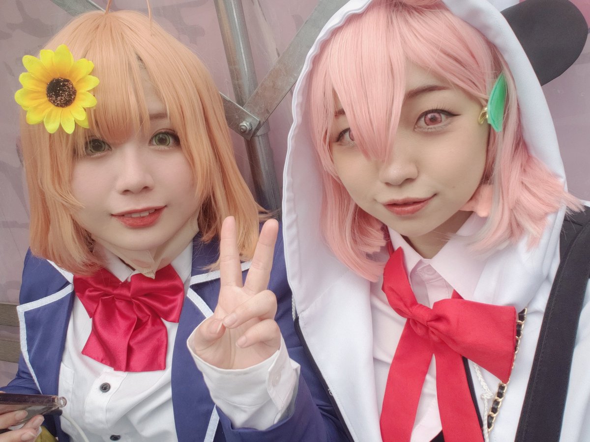 #アニメメメ ありがとうございました!! 相方との初🌈🕒併せ… げまじょ🌻🎋ができて嬉しかったぁ(*´ω`*) お話出来た方ありがとうございました!! #メメメコス