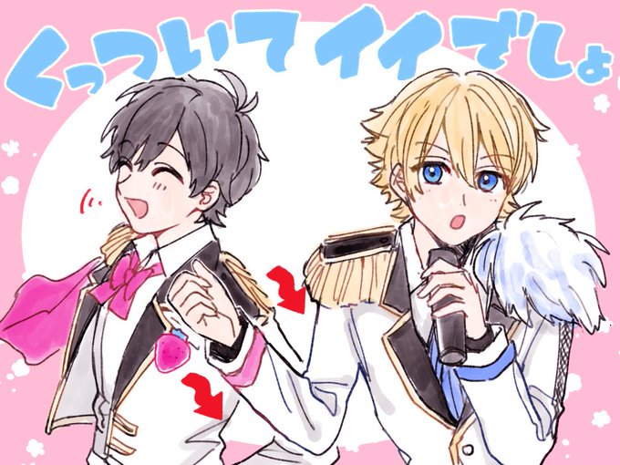 シャイニーウェディングの「くっついていいでしょ~♪」で飛鳥くんがくっつかせるみたいに引っ張ってるのが好きです☺ #あすかなアート