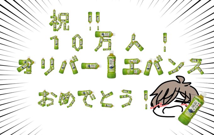 #絵バンス オリバー先生10万人おめでとうございます!! 約100本の綾鷹でお祝いさせていただきます!!!!🍵🍵🍵🍵🍵🍵🍵🍵🍵🍵🍵🍵🍵🍵🍵🍵🍵🍵🍵🍵🍵🍵
