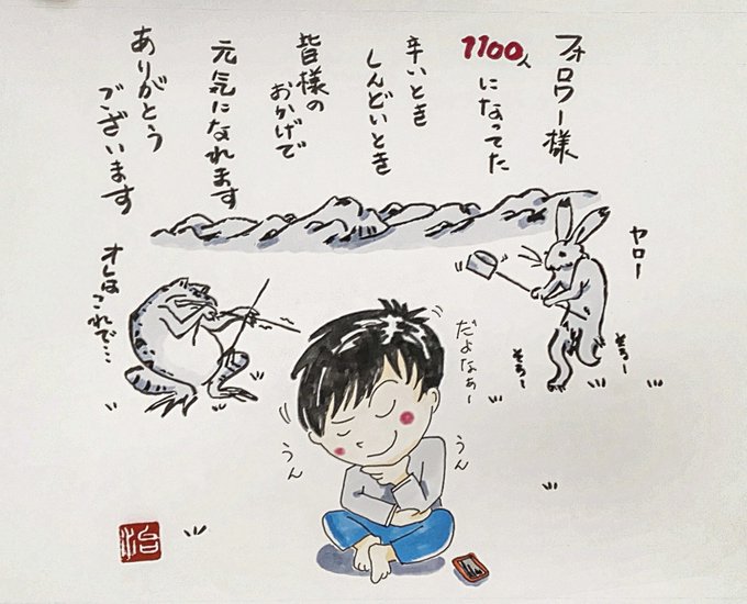 フォロワー様 1100人❗️ いつもありがとうございます😊 なにぶん平日はサラリーマンなもので遅筆とかのレベルではなく、チョー遅筆です( ;8;) 皆様に繋がっていただけることが今は幸せ 感謝‼️ #絵描きさんと繋がりたい
