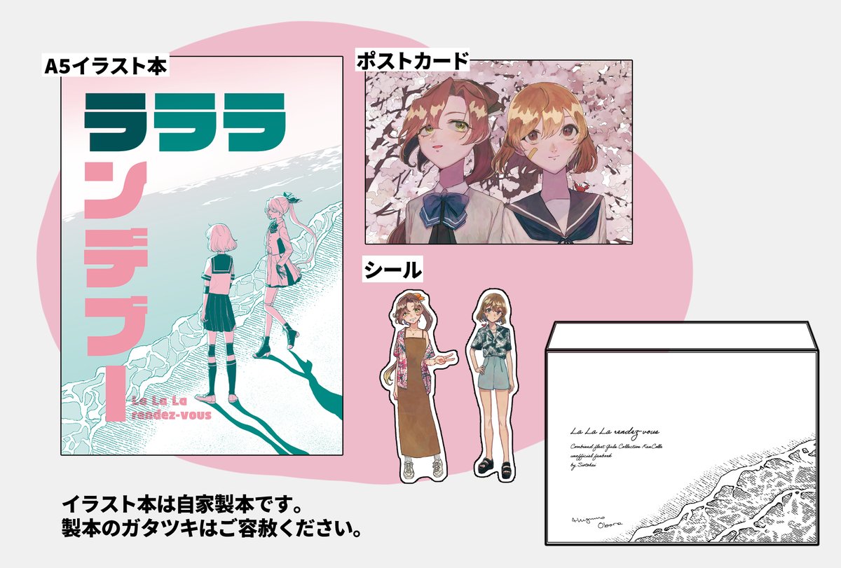 【新刊サンプル】「ラララランデブー」 A5/12ページ/本文フルカラーイラスト本セット 秋雲朧のとりとめのないイラスト集です。 ※自家製本のため製本のガタツキはご容赦ください。 Pixiv▷pixiv.net/artworks/10736… メロンブックス▷melonbooks.co.jp/detail/detail.…