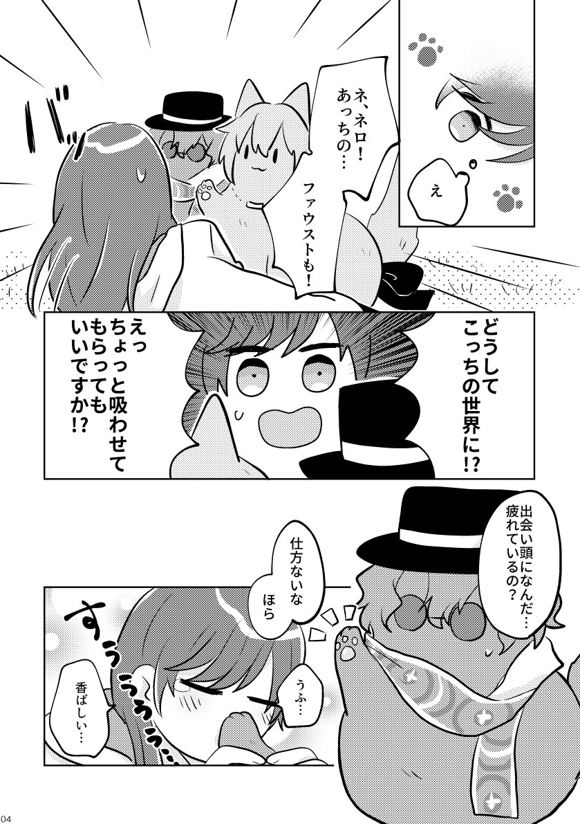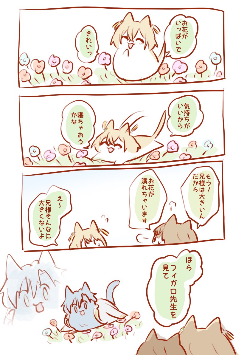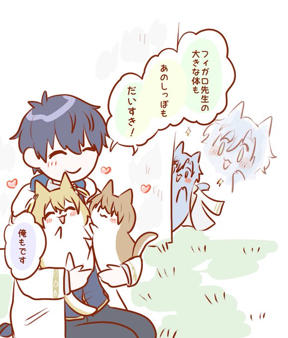 リクエストのねこ先生とミチルねこです!!あとフィねこの「!?」って顔また見たいってメッセージもいただいたので混ぜました