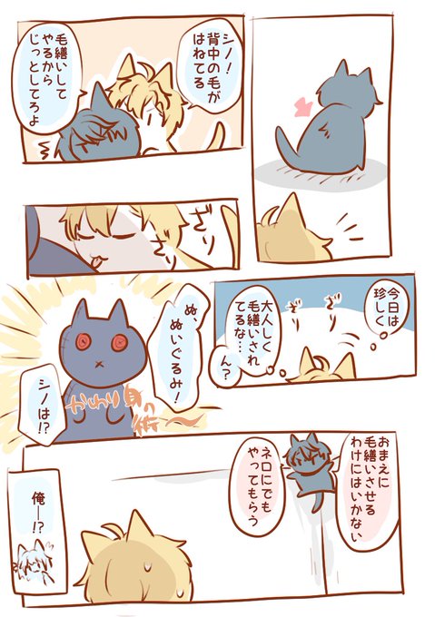 「ヒースねこがシノねこを構ってる(毛繕い)」です!させてくれませんでした!