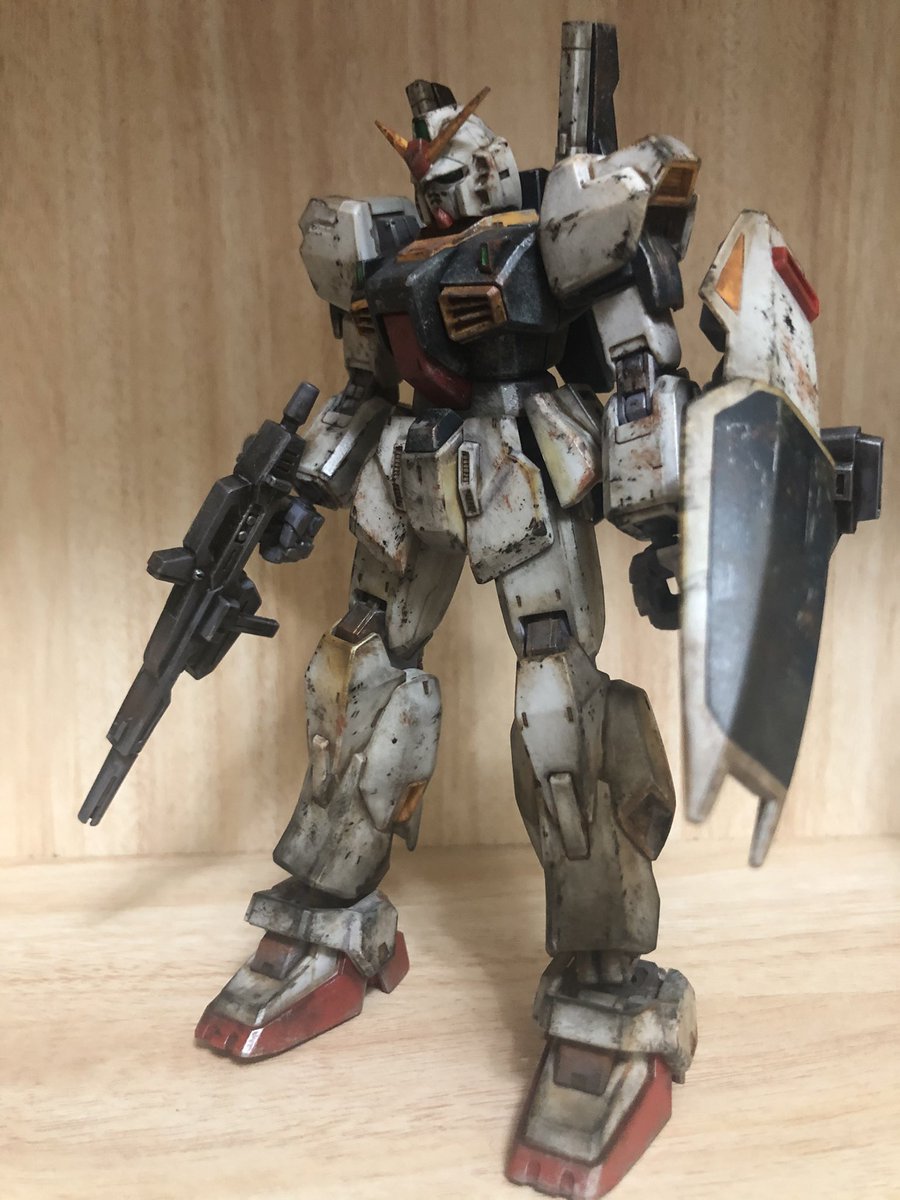 HG ジム改汚して完成です😆 LEDを仕込んでみました!3枚目です!ウェザリング+LED、かっこいい気がします✨ #ガンプラ好きと繋がりたい #ガンプラの画像貼るとRTされると聞いて #あなたの量産機が見たい