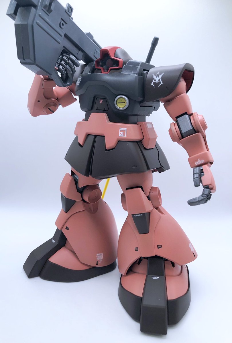 RGサザビー 完成しました✨ 立たせるとちょい後ろに傾きがちだけどかっこいいです☺️ 良い感じにギラギラ😎 #ガンプラ好きとつながりたい #ガンプラの画像を貼るとRTされると聞いて #ガンプラ完成