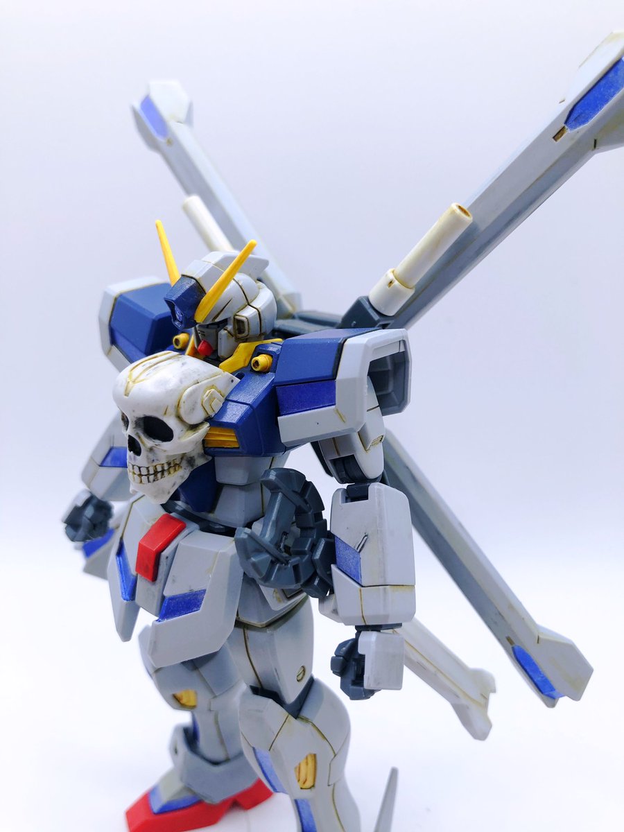 クロスボーン魔王完成! シール部分だけ塗り分け、💀とモールド部分だけちょい汚しで軽く終わらせましたー!小さい、けどめちゃくちゃかっこ良い🤭 そして撮影が上手く出来た気がする✨ #ガンプラ好きと繋がりたい #ガンプラの画像貼るとRTされると聞いて