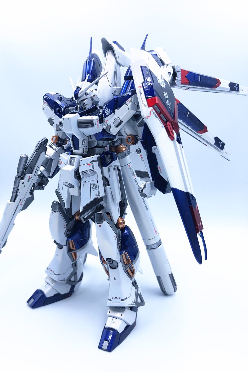 RG Hi-νガンダムやっと写真撮るまでいけました笑 塗装して数ヶ月、先日やっとデカール貼りました🤣好きに塗ってツルツルにしただけです!やっぱどんな色でも映えますね✨ 反応頂けたら嬉しいです! #ガンプラ好きと繋がりたい