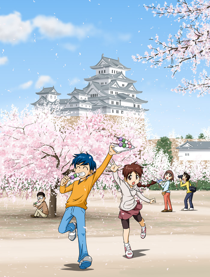 花より団子。 もう季節過ぎちゃいましたけど。 あー、でもまた姫路城に行きたいな……。 #姫路城 #イラスト #城 #桜 #歴史