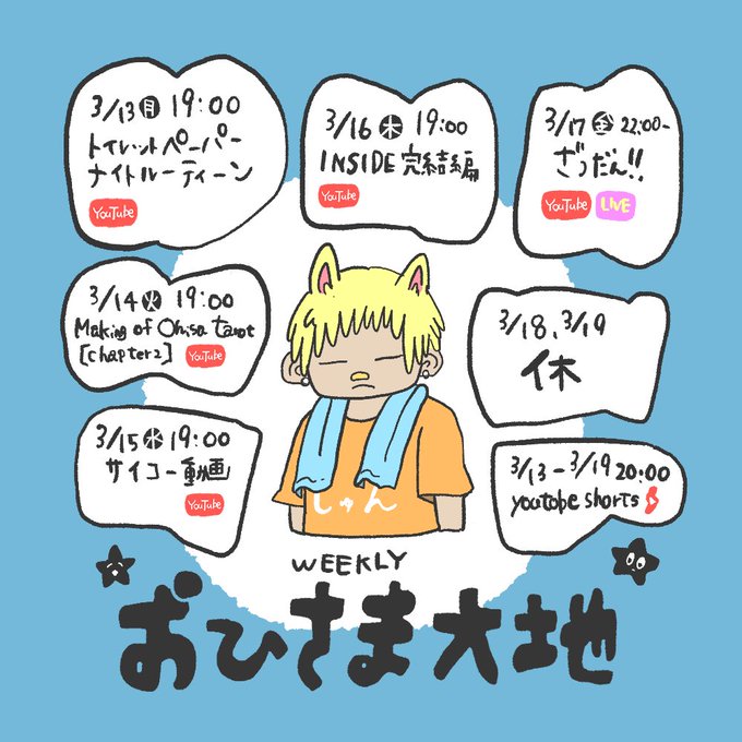 おはようございます☀ 今週の予定表です‼ 今週はYouTube全振りで行ってみようとおもいます🙇 ▽チャンネル登録はこちら youtube.com/@ohisama_daichi #新人VTuber #イラスト