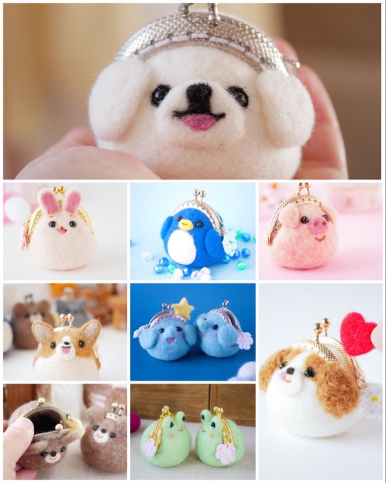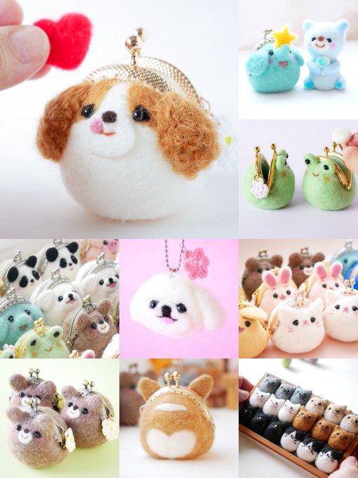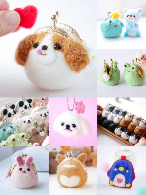 かたちと質感にこだわったいつも一緒にいたくなる手のひらサイズマスコット 羊毛フェルトのがま口は水フェルトとニードルフェルトの組み合わせ👛 あなたの大切なものをひとつ入れて💍✨ 犬とお花チャームも人気です🌸🐶🐻❄️🌼 🔗ohisamafelt.com @Lupopo_cafe さん ありがとうございます💓