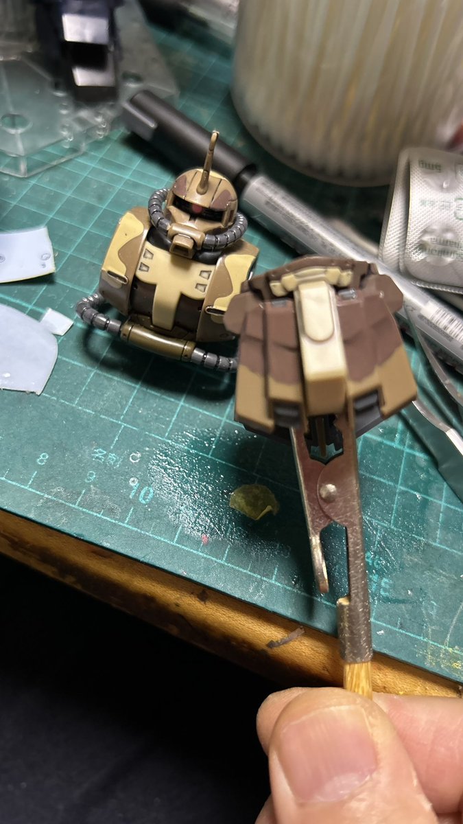HG 1/144 RX-77-2 ガンキャノン (ククルス・ドアンの島版) です。 109のハヤト・コバヤ機が完成しました。 クリアパーツのゴーグルはこれも嵌め合わせがタイトなので無理せず嵌合部を削って装着しました。 #ガンプラの画像を貼るとRTされると聞いて #ガンプラ好きとつながりたい