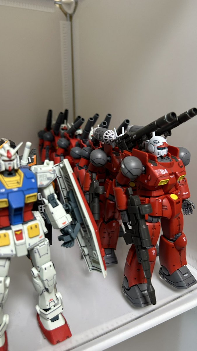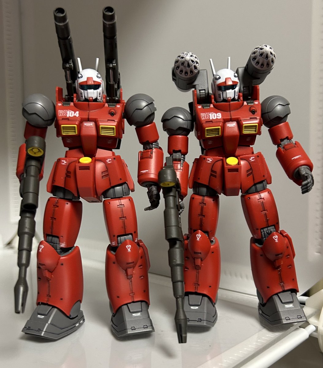 HG 1/144 RX-77-2 ガンキャノン (ククルス・ドアンの島版) です。 104カイ・シデン機と109のハヤト・コバヤシ機が完成しました。 良いキットですね。 欠点はゴーグルの嵌め合わせがタイトな事ぐらいです。 #ガンプラの画像を貼るとRTされると聞いて #ガンプラはどんな自由な発想で作ってもいいんだ