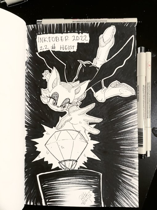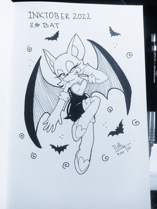 Inktober Day 3 Rouge the BAT! 🤍🖤 #inktober #inktober2022 #inktoberday3 #scurry #SonicTheHedgehog #sonicart #RougeTheBat