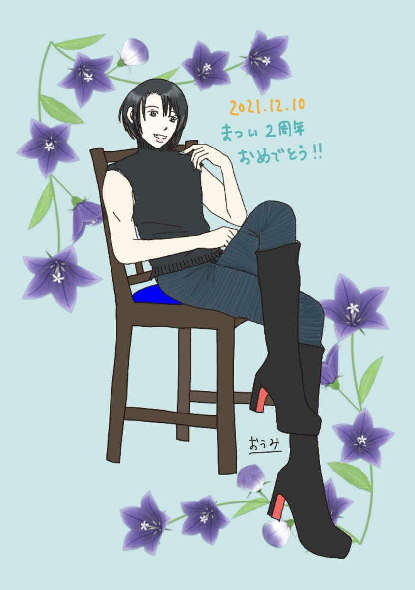 まつい二周年おめでとう~☺️🎊✨ これは脚に自信があって見せびらかしてくるタイプのまつい #12月10日は松井江実装二周年記念日 #12月10日は松井江実装記念日 #松井江実装二周年 #松井江実装記念日
