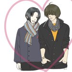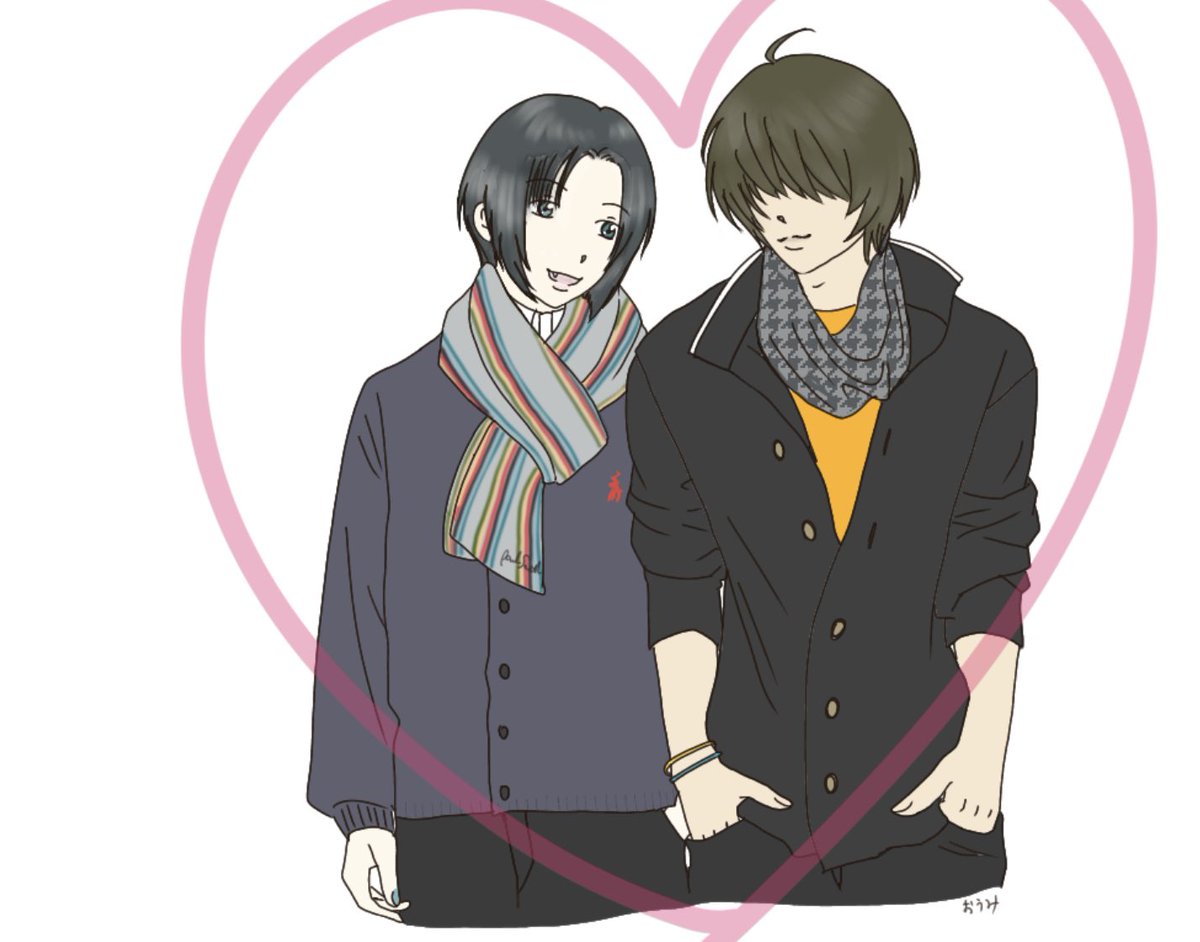 お題「交換」 #くわまつ深夜の創作一本勝負 #くわまつドロライ過去お題収穫祭 最終日滑り込みで私服交換している現パロのくわまつを描きました まついのニーハイブーツを履かされてガニ股になってるくわなとくわなのモッズコートを奪ってまんざらでもないまついです